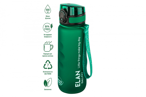 БЫЛО 750 руб! Бутылка для воды 500 мл 6,5*6,5*23 см "Style Matte" с углублениями д/пальцев, темно-зеленая