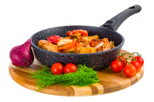 БЫЛО 1428 руб!! "Сковорода глубокая 20 см ГАРМОНИЯ ВКУСА "Черный мрамор" без крышки, с/р, 41*21*8,5 см"