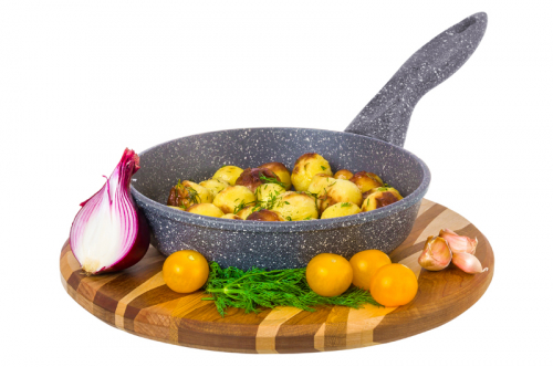БЫЛО 1468 руб!! "Сковорода глубокая 22 см ГАРМОНИЯ ВКУСА "Черный мрамор" без крышки, с/р, 43*23*9 см"