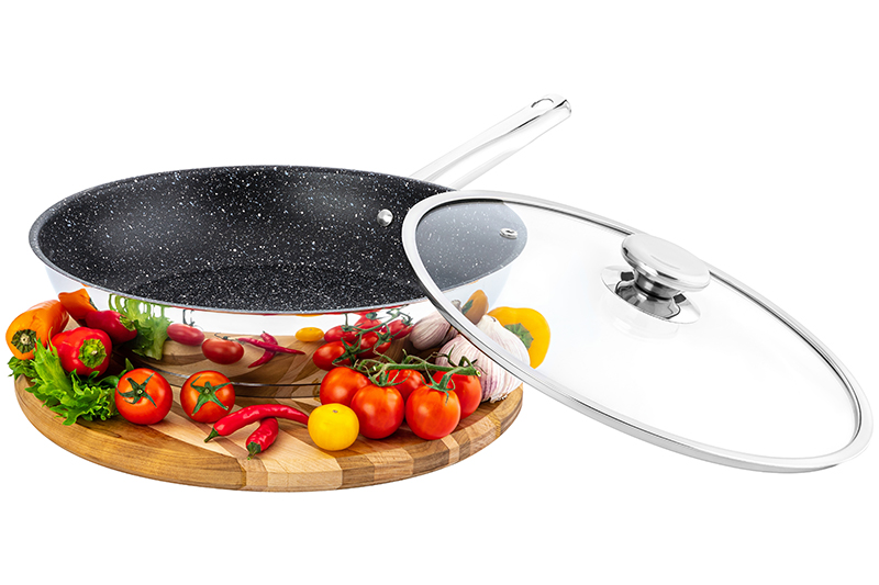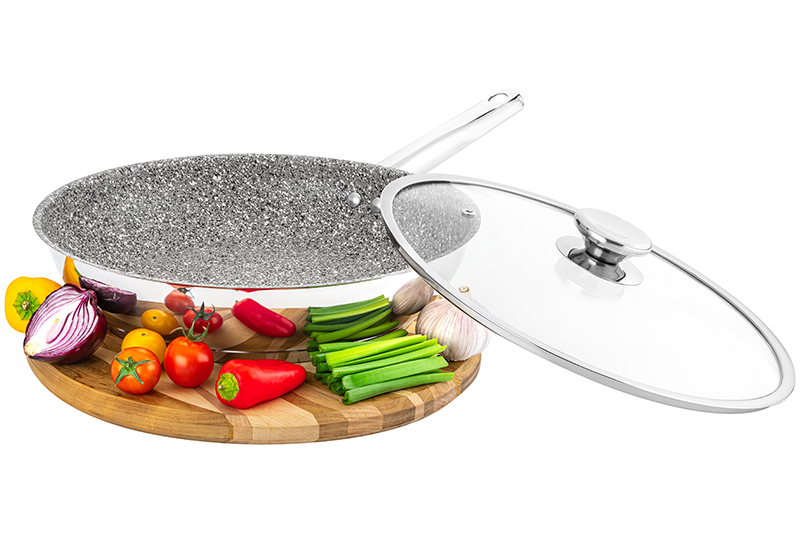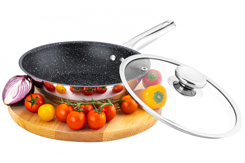 БЫЛО 3561 руб! Сковорода глубокая 28 см ГАРМОНИЯ ВКУСА "Серебро" черный мрамор С КРЫШКОЙ ф28, н/р, 49*29,5*10,5 см