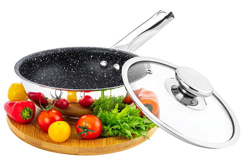 БЫЛО 2339 руб! Сковорода глубокая 18 см ГАРМОНИЯ ВКУСА "Серебро" черный мрамор С КРЫШКОЙ ф18, н/р, 35,5*19,5*9 см