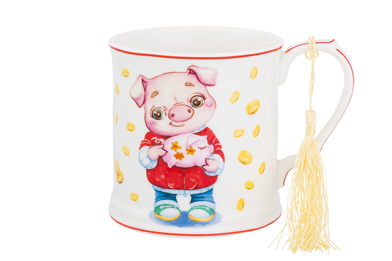 БЫЛО 231 руб!!! "Кружка 380 мл 12*8,5*9 см "Свинка с копилкой" NEW BONE CHINA"