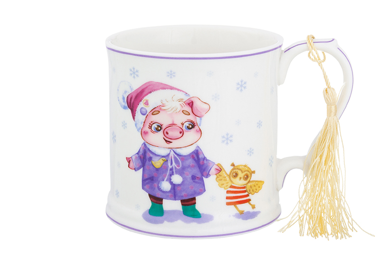 БЫЛО 231 руб!!! "Кружка 380 мл 12*8,5*9 см "Свинка с игрушкой совой" NEW BONE CHINA"