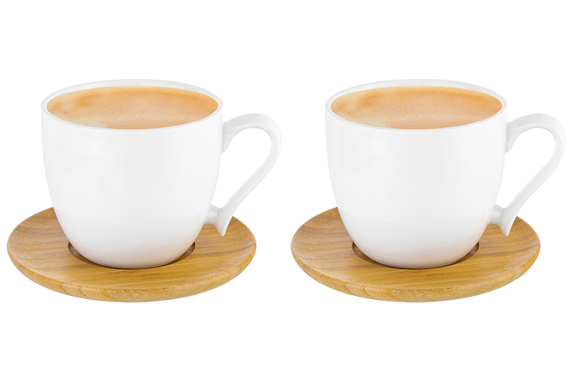 БЫЛО 691 руб! Чашка для капучино и кофе латте 220 мл 11*8,3*7,5 см "Айсберг" + дерев. подставка (2 шт.)