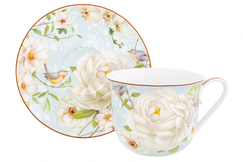 БЫЛО 795 руб!!! "Чайн. пара 2 пр. 500 мл 14*11*8,5 см "Дикая роза" NEW BONE CHINA"