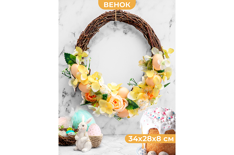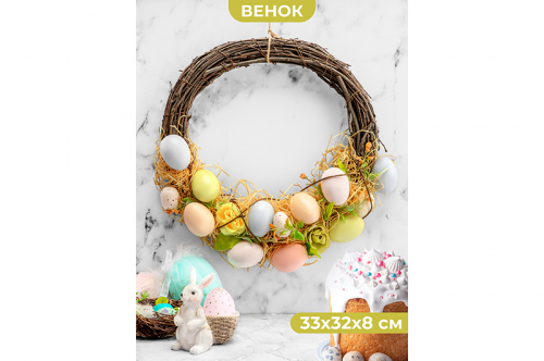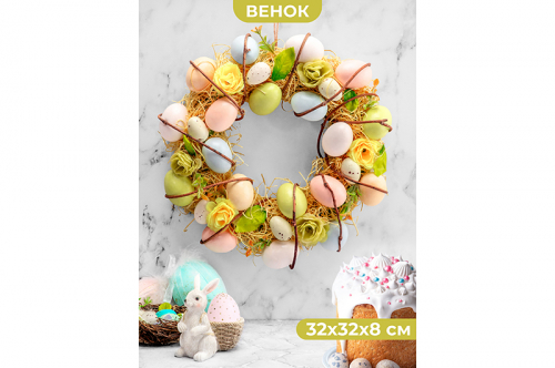 Пасхальное украшение венок 33*32*8 см "Воздушная коллекция"