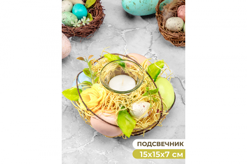 Пасхальное украшение подсвечник 15*15*7 см "Воздушная коллекция" на 1 свечу