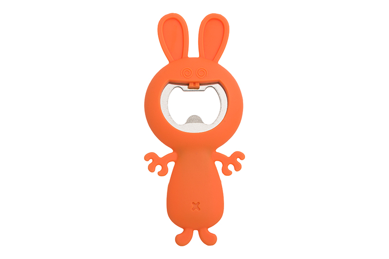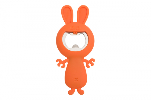БЫЛО 124 руб!!! "Открывалка для бутылок 10,5*4,5*1 см "Зайка оранжевый" силикон + нержавеющая сталь"