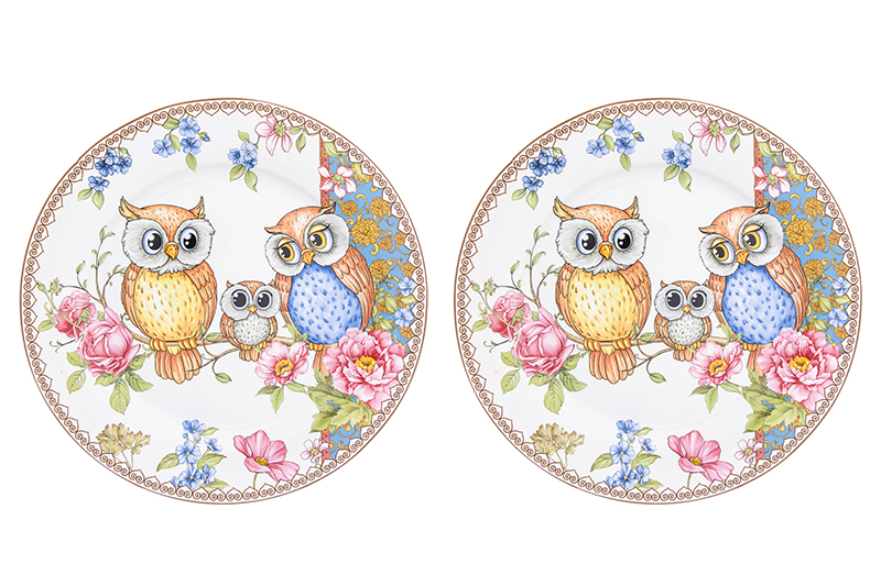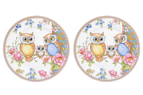 БЫЛО 1059 руб!!! "Набор тарелок 2 пр. 26*26*2 см "Совушки" NEW BONE CHINA"