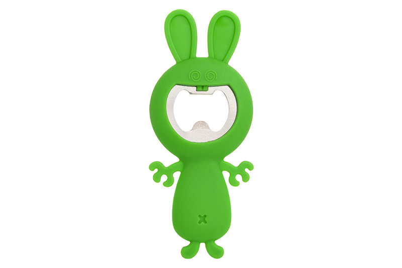 БЫЛО 124 руб!!! "Открывалка для бутылок 10,5*4,5*1 см "Зайка салатовый" силикон + нержавеющая сталь"