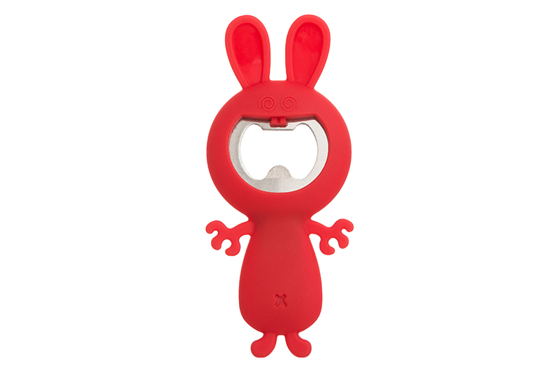 БЫЛО 124 руб!!! "Открывалка для бутылок 10,5*4,5*1 см "Зайка красный" силикон + нержавеющая сталь"