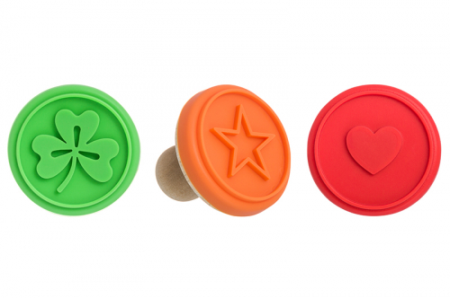БЫЛО 240 руб!!! "Печать - штамп для теста, мастики, печенья и марципана 6*6*7,5 см "Разноцветная" + 3 нас, силик+дер"