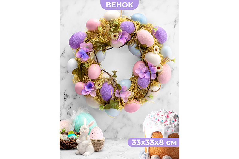 Пасхальное украшение венок 32*32*7,5 см "Сиреневый шарм"