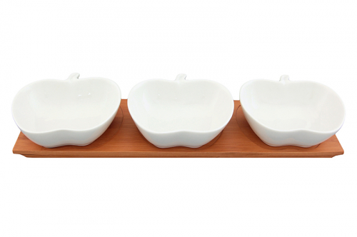 Блюдо сервировочное 3 пр. 33,5*10*5 см 150 мл "Яблоко" на дер. подставке