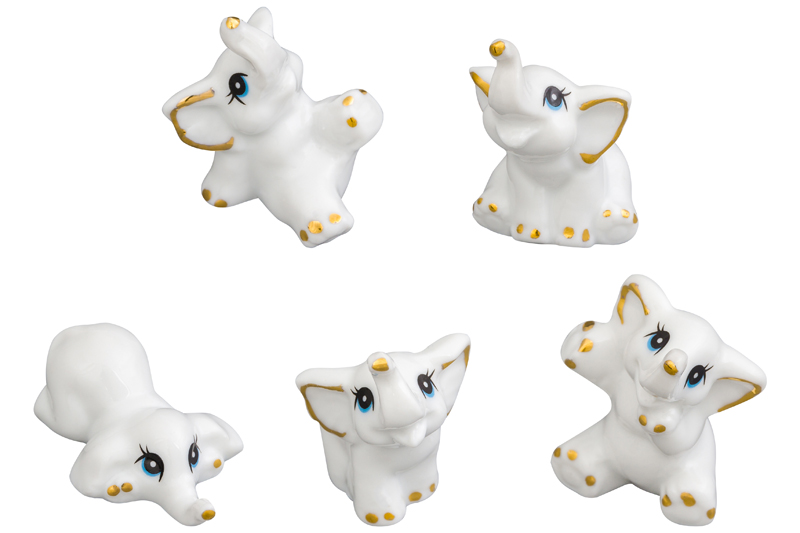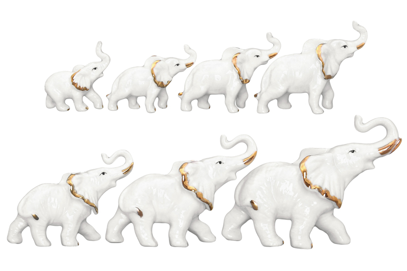 Фигурка декор. 7 пр. "Семь слонов - Хранители дома" белая, золото