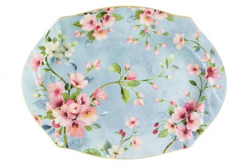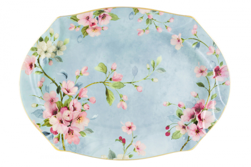 БЫЛО 1159 руб! Блюдо 30*22*2 см "Яблоневый цвет на голубом" NEW BONE CHINA
