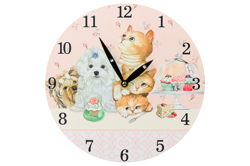 БЫЛО 491 руб! "Часы настенные 29*4*29 см "Котята на розовом"