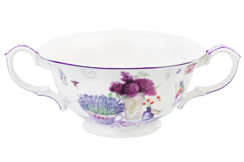 БЫЛО 550 руб! Бульонница 320 мл 18*12*6,5 см "Лаванда" NEW BONE CHINA