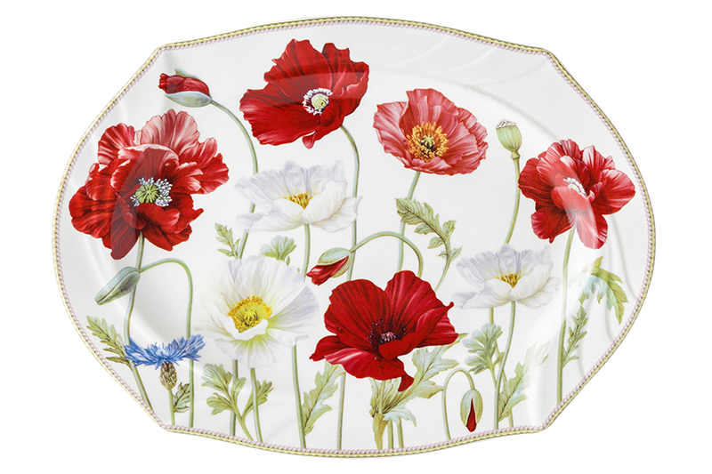 БЫЛО 832 руб! Блюдо 25*18,3*2 см "Маки" NEW BONE CHINA