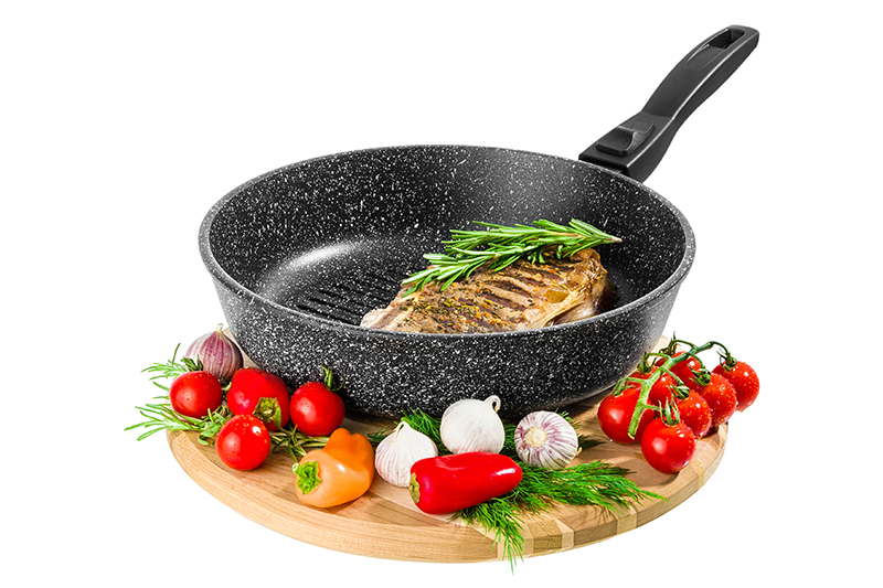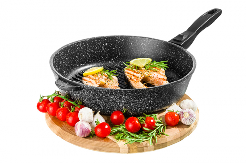 БЫЛО 1996 руб! Сковорода - гриль круглая 26 см ГАРМОНИЯ ВКУСА "Черный мрамор" без крышки, с/р, 47*27*10,5 см