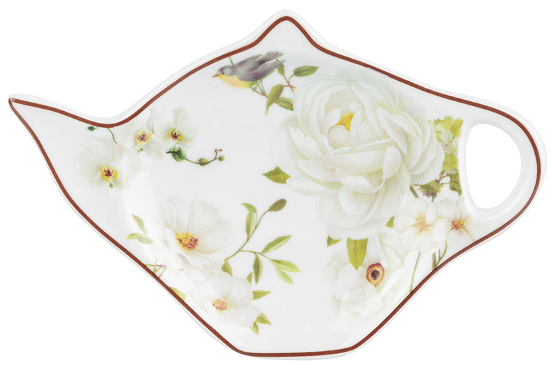 БЫЛО 160 руб! Подставка под ч/п 12,5*8*1,5 см "Дикая роза на белом" NEW BONE CHINA
