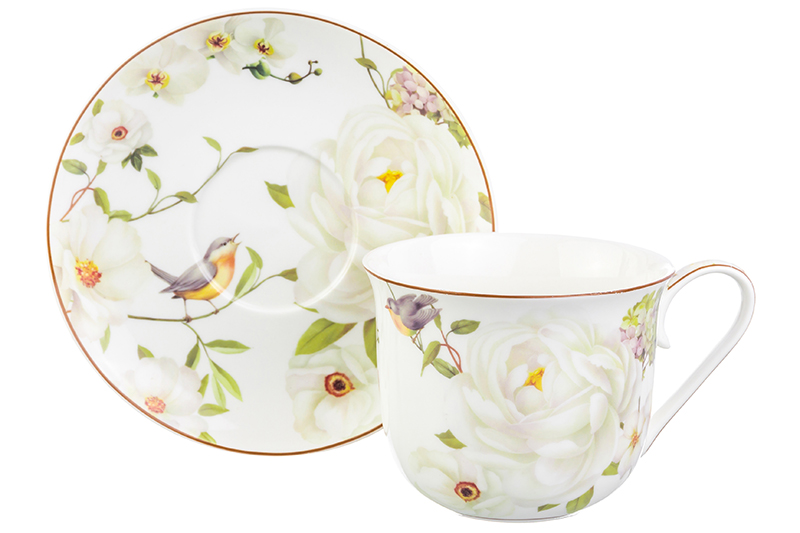 БЫЛО 847 руб! Чайн. пара 2 пр. 500 мл. 14*11*8,5 см "Дикая роза на белом" NEW BONE CHINA