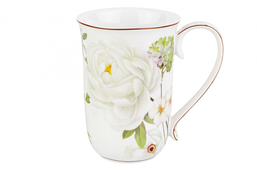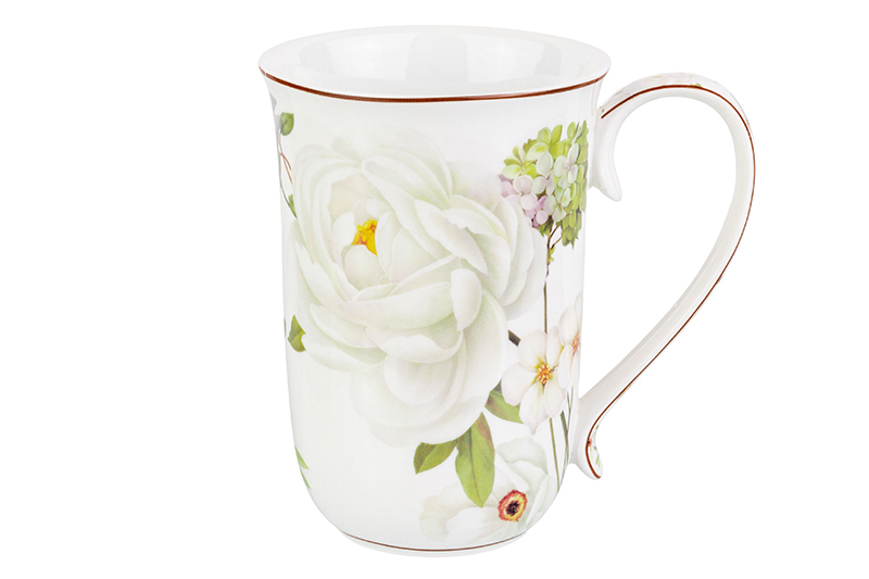 БЫЛО 416 руб! Кружка 450 мл 12,8*8,7*12,5 см "Дикая роза на белом" NEW BONE CHINA