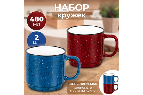 БЫЛО 574 руб! Набор 2 кружек 480 мл 13,5*9,8*9 см штабелируемые, синяя и бордовая