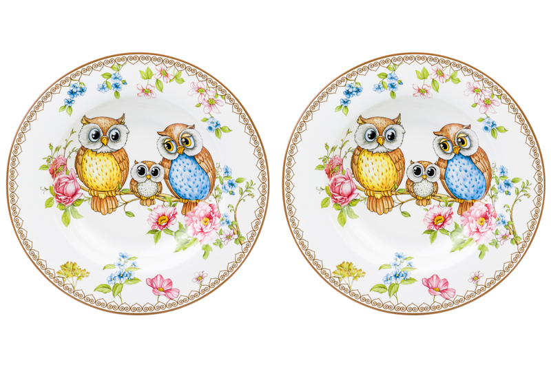 БЫЛО 877 руб! Набор тарелок 2 пр. 300 мл 21,5*21,5*3 см "Совушки" глубокие NEW BONE CHINA