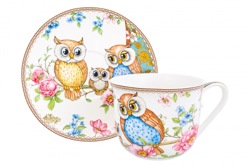 БЫЛО 847 руб! Чайн. пара 2 пр. 500 мл 14*11*8,5 см "Совушки" NEW BONE CHINA