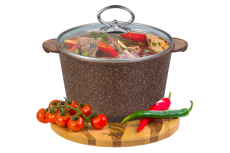 БЫЛО 2669 руб.Кастрюля 4 л ГАРМОНИЯ ВКУСА "Серый агат" С КРЫШКОЙ ф22, 28,5*23*17 см