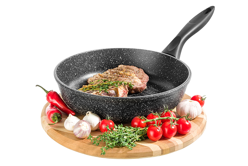 БЫЛО 1700 руб.Сковорода - гриль круглая 24 см ГАРМОНИЯ ВКУСА "Черный мрамор" без крышки, н/р, 45*25*9,7 см