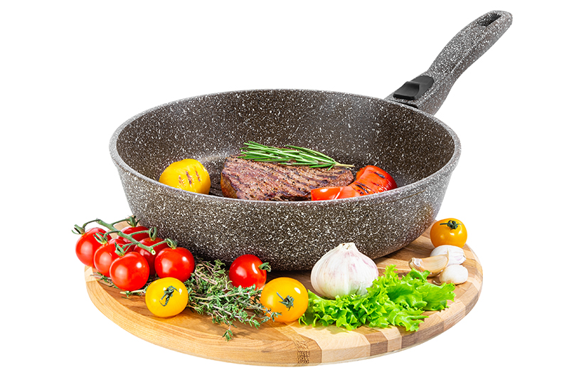 БЫЛО 2085 руб.Сковорода глубокая 22 см ГАРМОНИЯ ВКУСА "Серый агат" С КРЫШКОЙ ф22, с/р, 43*23*10,5 см