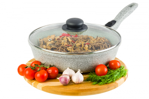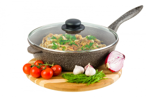БЫЛО 2220 руб.Сковорода глубокая 24 см ГАРМОНИЯ ВКУСА "Серый агат" С КРЫШКОЙ ф24, с/р, 45*25*11,5 см