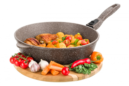 БЫЛО 2268 руб.Сковорода глубокая 28 см "Мрамор" без крышки, с/р и маленькая, 51,5*29*11,5 см