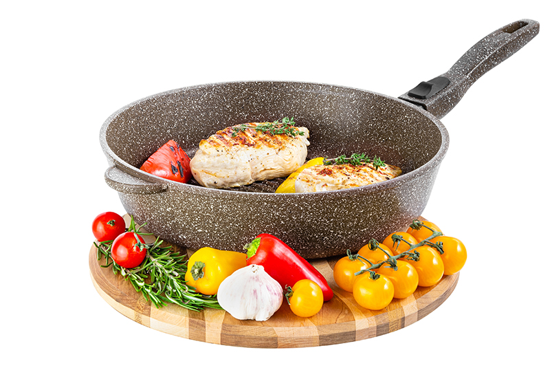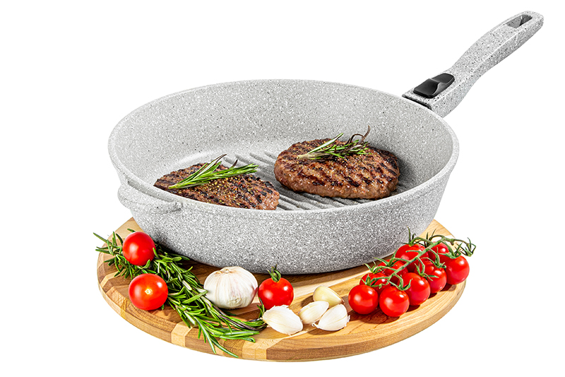 БЫЛО 2369 руб!! Сковорода - гриль круглая 28 см ГАРМОНИЯ ВКУСА "Серый агат" без крышки, с/р, 51,5*29*10 см