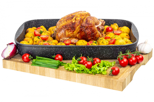 БЫЛО 2227 руб!! Противень утолщенный 3 л ГАРМОНИЯ ВКУСА "Черный мрамор" 33,5*22*5,5 см