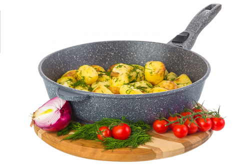 БЫЛО 2537 руб!! Сковорода глубокая 28 см ГАРМОНИЯ ВКУСА "Серый мрамор" без крышки, с/р, 51,5*29*10 см