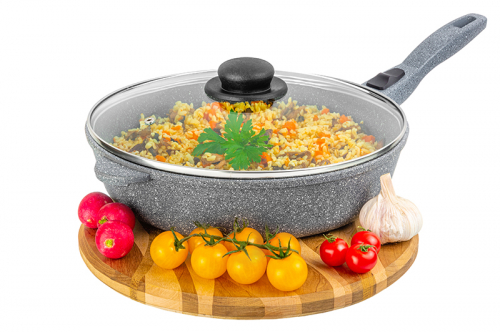 БЫЛО 2351 руб!! Сковорода глубокая 24 см ГАРМОНИЯ ВКУСА "Серый мрамор" С КРЫШКОЙ ф24, с/р, 45*25*11,5 см