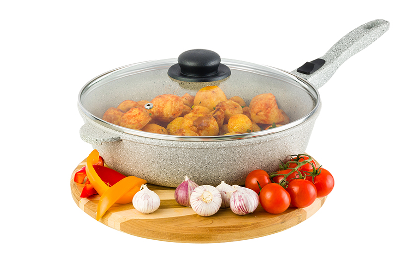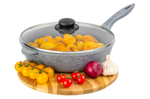 БЫЛО 2765 руб!! Сковорода глубокая 28 см ГАРМОНИЯ ВКУСА "Серый мрамор" С КРЫШКОЙ ф28, с/р, 51,5*29*12 см