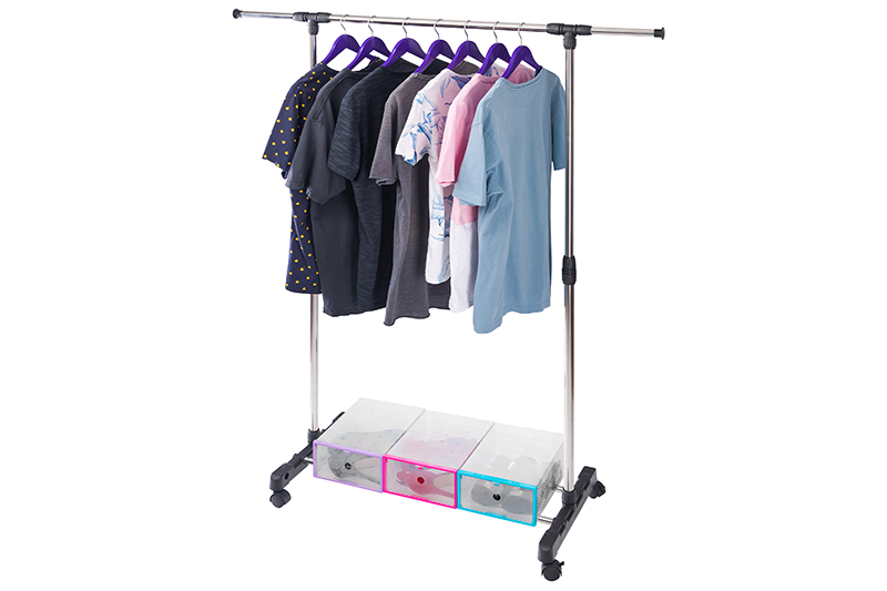 Вешалка для одежды телескопическая 1 перекладина 80*41*93-155 см "Серебристо-черная" на колесиках
