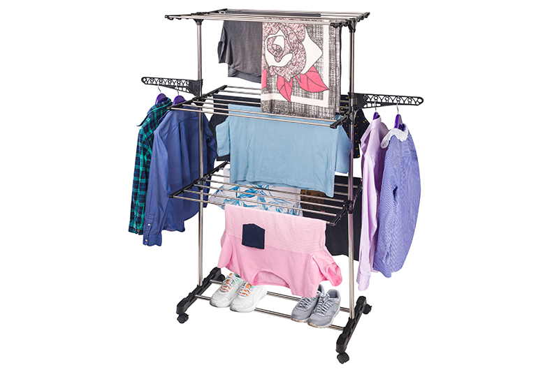 Сушилка 3-х ярусная 80*57*165 см "Серебристо-черная" на колесиках