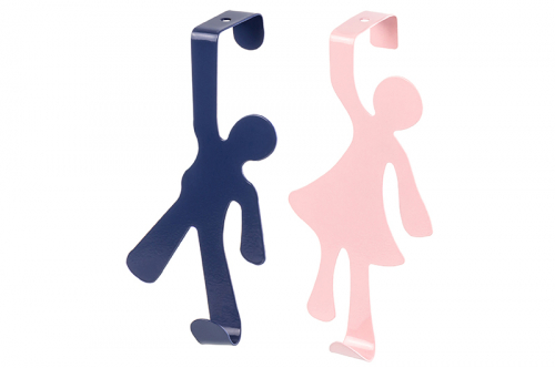Вешалка на дверь навесная 2 шт. 8,5*6,5*16,5 см и 8,5*6,5*17 см "Мальчик-девочка" синяя/розовая