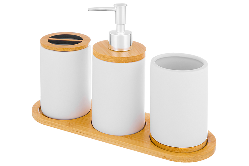 Набор д/ванной 3 пр. "Белый с хромом" на деревянной подставке