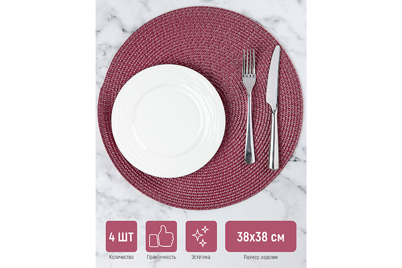 Набор 4-х круг салфеток 38*38 см "Пурпурный амарант" PVC