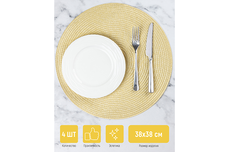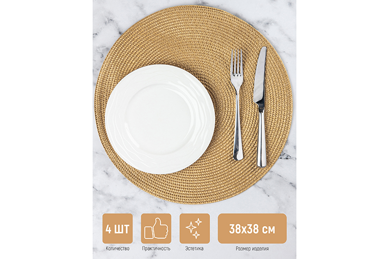 Набор 4-х круг салфеток 38*38 см "Античная латунь" PVC