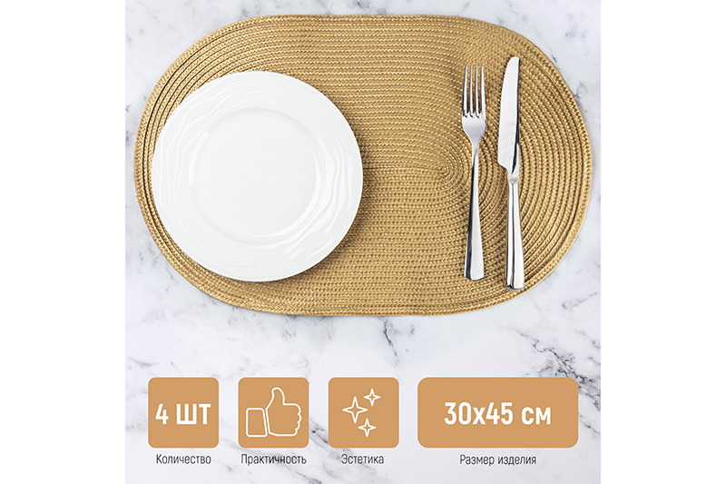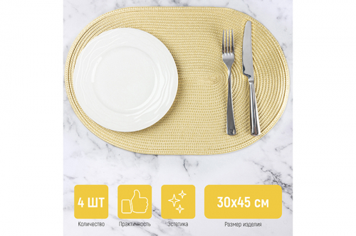 Набор 4-х овал салфеток 45*30 см "Золото" PVC (Модель 30*45)