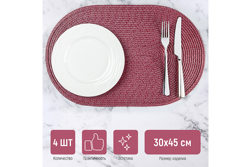 Набор 4-х салфеток 45*30 см "Пурпурный амарант" PVC, овал