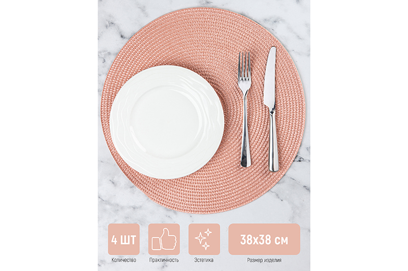 Набор 4-х круг салфеток 38*38 см "Песчаная роза" PVC