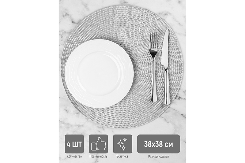 Набор 4-х круг салфеток 38*38 см "Серая платина" PVC